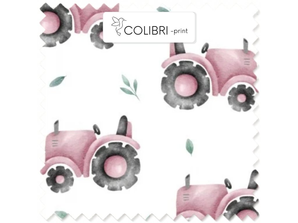 Růžové traktory na bílém